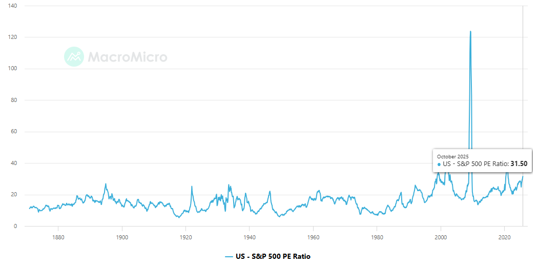 在乐观情绪背后,市场估值问题日益突出。目前,标普500指数的市盈率(P/E)超过30,远高于平均水平。如此高的估值意味着市场已经消化了极高的增长预期,为任何潜在的失望留下的缓冲空间非常有限。更值得关注的是市场的极端集中化现象。纳斯达克100指数中,市值排名前五的公司占据了其价格波动的50%,而仅英伟达(Nvidia)一家公司的权重就高达14%。