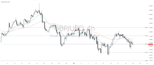 GBPUSD虽一度跌破双均线附近。价格持续在此区域盘整,结构未出现明显变化,显示整理可能延续。若重回1.3350上方,价格或将反弹试探1.3425阻力位。相反,若进一步跌破1.3350,价格可能回落至下方支撑1.3275。